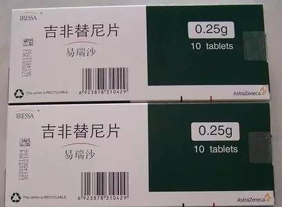 易瑞沙,学名儿吉非替尼,2003年上市。一般用量是250mg,可以吃到300mg。